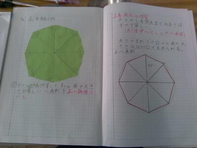 これは、5年生が算数で八角形を書いたところです。分度器を使ったり、コンパスや定規を使うのでとても大変そうですね!みなさんは、図形を書くのが好きですか。(かなな)