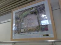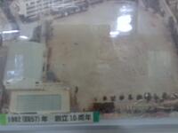 歴代(れきだい)の航空写真は1かいの中央昇降口近く(ちゅうおうしょうこうぐちちかく)、事務室(じむしつ)のまえの廊下(ろうか)にかざってあるので、ぜひ見てみてください。