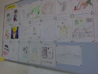 旭小では月1で4~6年生のクラブ活動があります。これは中央階段3~4階の踊り場に掲示してあるイラストクラブの作品です。素敵な絵ですね。(ウェイ)