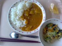 7月14日、ついに一学期(いちがっき)最後(さいご)の給食(きゅうしょく)の日がやってきました。メニューは夏野菜(なつやさい)カレー・わかめサラダ・冷凍白桃(れいとうはくとう)の三種類(さんしゅるい)です。しっかり味(あじ)わって食べましょう。(UFO)