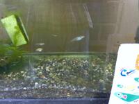 これは、5年生の教室(きょうしつ)のとなりにあるメダカの水槽(すいそう)です。メダカがたくさん泳いでいます!。水草などもはいっています。メダカのほかにも生き物がいて、タニシと言う生き物もくらしています。5年1組と5年2組の間に1こ、5年2組と5年3組の間に1こあります!。(クラゲ)