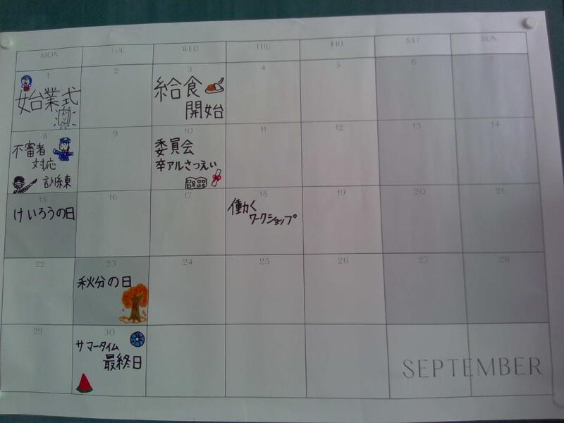 2学期が始まってしばらくたちます。給食(きゅうしょく)も始まってきました。この画像(がぞう)は、9月のこんだてひょうです。おいしそうなメニューがたくさんあります。2学期も給食(きゅうしょく)を食べてがんばっていきましょう。(くらげ)