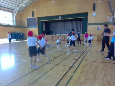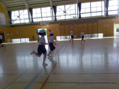 なかよし、すこやか学級(がっきゅう)の体育急ぎ(たいいく)では、スポーツテストの練習試験(れんしゅう)をしています。