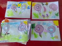 これは、一年生(いちねんせい)が色水(いろみず)でぬった絵です興奮・ヤッター!興奮・ヤッター!興奮・ヤッター!