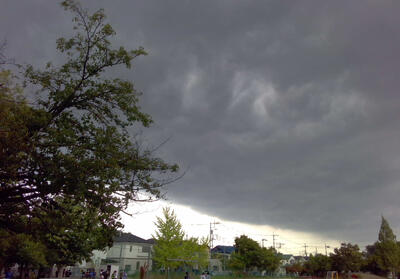 9/18の、かえるときの天気です。このときは雨が一瞬(いっしゅん)ふってすぐやみました。空をみると、あまぐものすこしむこうに白いくもがみえていて、きれいにみえました。ちなみに下のほうの✌は友達(ともだち)です  (ウェイ)