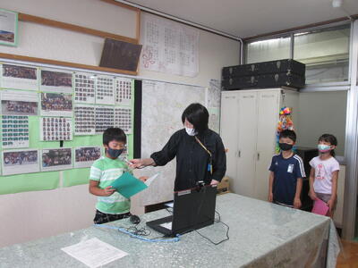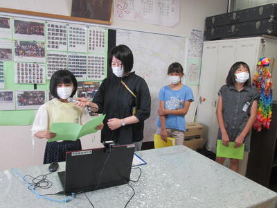 終業式では,5年生と2年生の代表の児童が,1学期を振り返っての作文を発表しました。