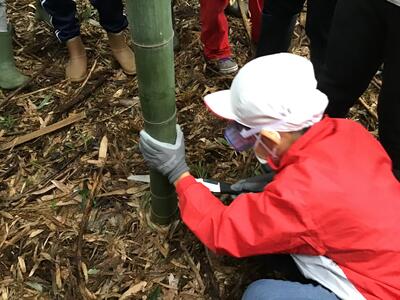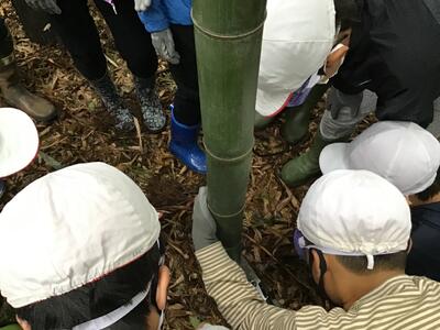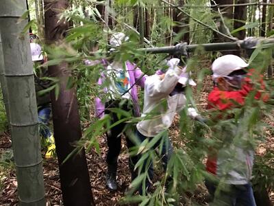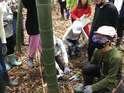 竹林整備の大切さを学んだ後は,竹林に入って竹を切り出しました。