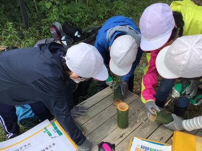 竹の成長や活用方法,里山の整備の大切さについてお話を聞き,学びを深めました。