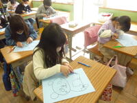 子どもたちは1時間集中して,「師匠」の話をよく聞き,版画の心得を学びました。