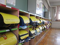 1年生の教室に入ると,ロッカーにきれいに並べられたランドセル。教室内の整理整頓もばっちりです!