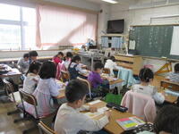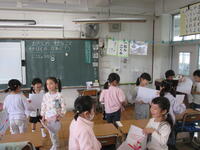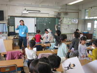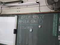 自己紹介の学習では,「自分のすきなもの」をテーマにそれぞれが画用紙に絵を描きました。そして,それをもって,自己紹介をしてまわりました。この活動を通して,友達が増えたような感じがします。