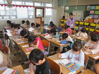 また,入学して「はじめて」自分の名前をかきました。姿勢も鉛筆の持ち方もしっかりとできていました。