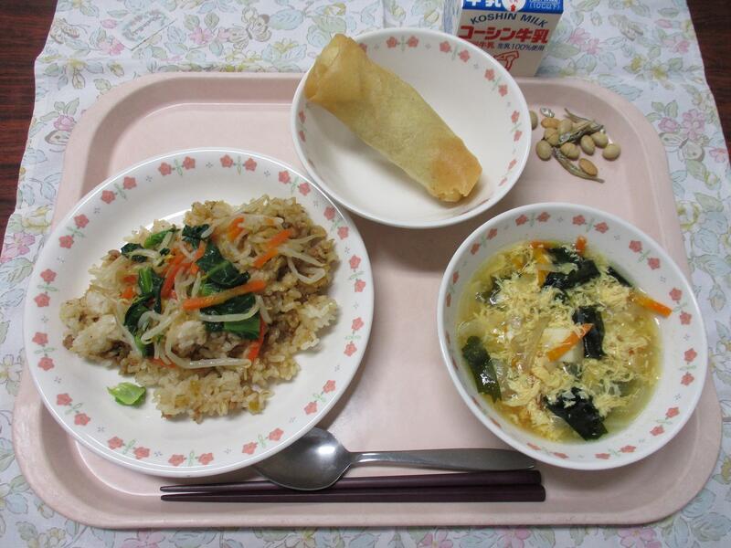 一覧へ 今日の給食 日時 2026年03月10日(火) 公開対象 給食メニュー 詳細 ビビンバ わかめとたまごのスープ ★スイートポテトの包み揚げ 大豆小魚 牛乳 作成者 旭小学校 更新日時 2026-03-16 12:43:32