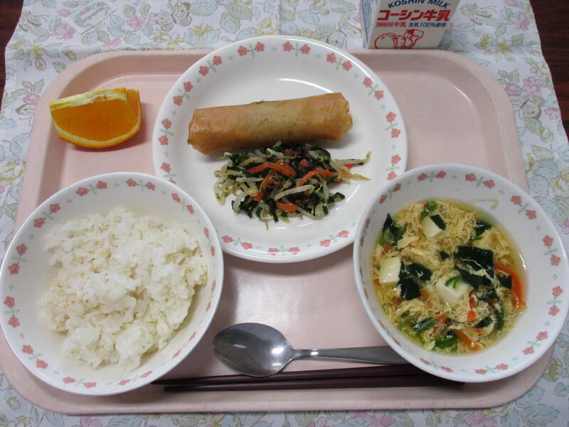 一覧へ 今日の給食 日時 2026年02月02日(月) 公開対象 給食メニュー 詳細 ごはん ★てづくり春巻き のりナムル たまごスープ オレンジ(柑橘果物) 牛乳 作成者 旭小学校 更新日時 2026-02-03 14:43:30