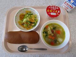牛乳、ツナピラフ、バターポテト、ミネストローネ、いよかん、小魚