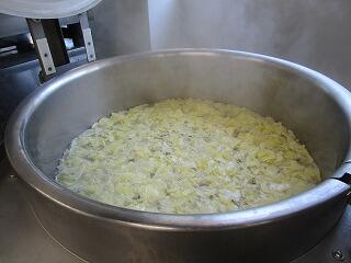 ポテトチップス用のじゃがいもです。給食室で薄くスライスしました。