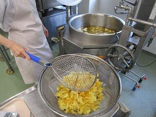 じゃがいもを揚げている途中の様子です。もうすぐ揚がります。