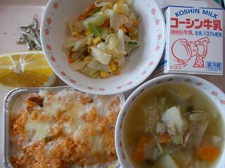 運動会の練習で疲れている皆さん、こんな時こそ、もりもり食べましょう。疲れた体を元気にさせるのは、食べ物と水分です。水筒の水やお茶を飲んで水分を補給するのも方法ですが、給食の牛乳やスープで効率よく水分と栄養を補給することをお勧めします。