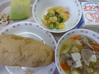 揚げパンきなこ 豚汁 じゃが芋の味噌サラダ メロン 牛乳