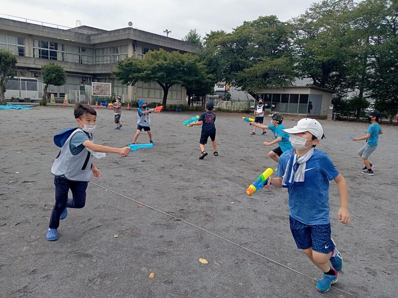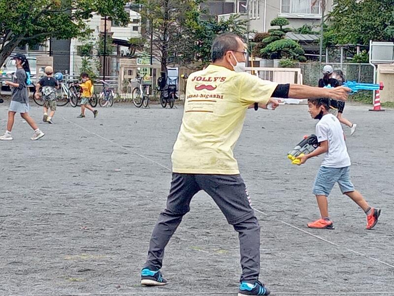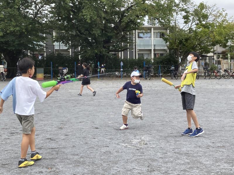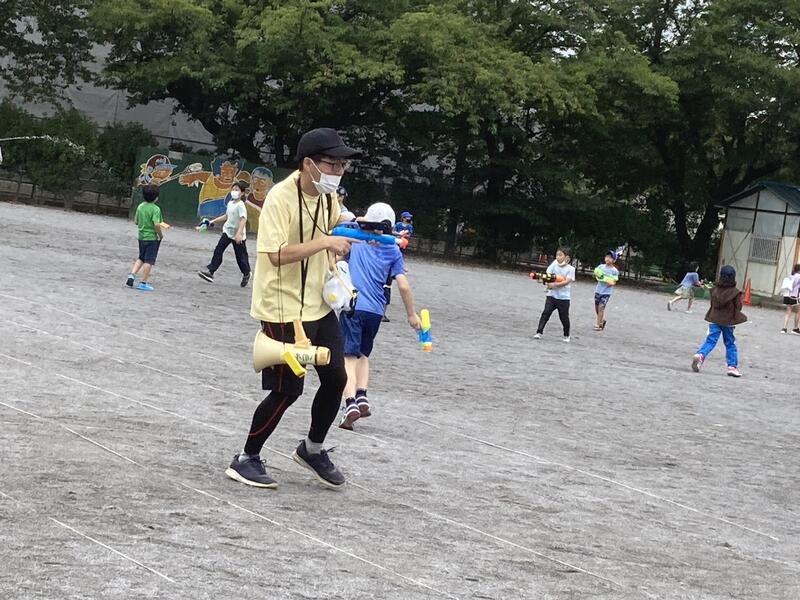 その後は待ちに待った水てっぽう合戦をしました。一生懸命に走り回る子ども達も大人もとても楽しそうでした。