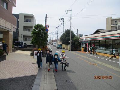 下級生は上級生に見守られて一緒に下校していきます。登校時より若干気が緩