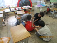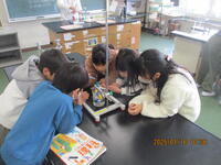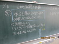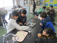 4年生が、理科室で「ものの温度と体積」の実験を行っていました。水は、温度がかわると体積がどう変化するのかを真剣に観察していました。