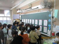昨日と本日の2日間、校内書き初め展を開催しました。1月8日・9日に校内書き初め会で書いた作品を各教室に掲示しています。子どもたちが集中して書いた作品は、どれもすばらしい作品です。子どもたちの頑張りがよくわかります。保護者の皆様にもたくさん来校いただき、ありがとうございました。