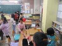 今日は、2年生が1年生を招待して、手作りおもちゃの交流会を行いました。2年生は、1年生が楽しんでむらえるように、クループごとに手作りのおもちゃを準備して、楽しく交流することができました。1年生にやさしく説明している姿から、「さすが2年生!」と感心しました。