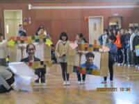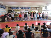 全校児童が体育館に集まり、『6年生を送る会』を行いました。今年度は、低学年・中学年・5年生の順番で発表しました。各学年の発表は、楽しく、そして6年生への感謝の気持ちが表れていました。6年生の歌『旅立ちの日に』は、きれいな歌声で、在校生も先生方もみんな感動しました。とてもよい『6年生を送る会』になりました。