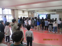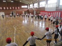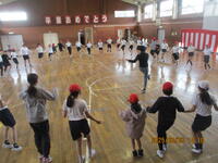 5年生が、体育館でフォークダンスに取り組んでいました。曲は、『マイムマイム』です。学年で大きな輪をつくり、みんなで楽しく踊ることができました。