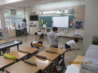 今日は、全校児童がそろって、大掃除を行いました。今年度使用した机や椅子、教室や廊下など、隅々まできれいにしました。オルゴールの音楽に合わせて、静かにそして一生懸命掃除している姿が、すばらしかったです。児童の皆さん、ありがとうございました。