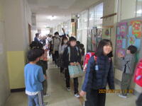 明日は、第44回の卒業証書授与式になります。在校生は参加しないため、在校生全員で6年生の見送りをしました。今まで、お世話になった感謝の気持ちをこめて、みんなから「ありがとう」の声と拍手が送られました。