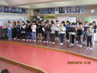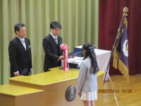 今日は、令和6年度の修了式を行いました。この1年間がんばってきた様子が、子どもたちの表情からも伝わってきました。今日は、交通ボランティアで登校指導していただいている3名の方にも参加していただき、児童会の代表児童から感謝の気持ちを伝えました。修了式の後は、辞校式を行いました。今年度は7名の先生方が転退職となりました。今まで子どもたちのためにご指導いただき、ありがとうございました。新天地でのご活躍を期待しています。