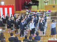 春を感じさせる暖かな天気の中、第44回卒業証書授与式を行いました。62名の卒業生全員が、立派な態度で参加することができました。入退場や返事、歌声や呼びかけなど、練習よりもとても上手で、さすが旭東小の卒業生だと感じました。中学校での皆さんの活躍を教職員一同、応援しています。