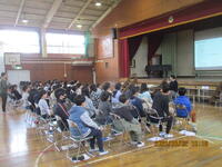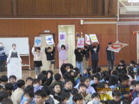 11月の全校朝会を体育館で行いました。今回は、保健委員会から「かぜの予防」と、給食委員会から「給食の仕方」についてのお話がありました。最後に、11月7日(金)の音楽発表会で全体で歌う「歌よありがとう」を全員で歌いました。初めて全員でそろって歌いましたが、とても上手でした。本番では、もっときれいな歌声が響くのを楽しみにしています。