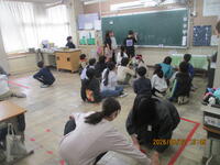 今日は、ワンポイント避難訓練を実施しました。今までは、授業中で先生がいる状況での避難訓練でしたが、今回は、先生がいない休み時間に地震が起きたと想定して実施しました。子どもたちは、突然の緊急地震速報に驚いた様子でしたが、先生の指示がなくても自分たちで素早く一時避難の態勢をつくることができました。地震は、いつ起きるかわかりません。慌てずに、自分で考えて行動できるようにしていきたいと思います。