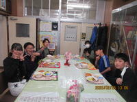 先々週から始まった、6年生との会食も今日で最後となりました。校長先生からは、「小学校での一番の思い出は?」や「中学校で頑張りたいことは?」などの質問をして、6年生の今の思いを聞くことができました。6年生とは、今までゆっくりと話す機会がなかったので、とても貴重な時間となりました。卒業まであと10日です。残りの日々を大切にして、卒業の日を迎えてほしいと思います。