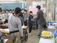 今日は、旭町保育園と吉野沢保育園の園児の皆さんを招待して、交流会を行いました。教室では、1年生が生活科で学習した「どんぐりごま」と「まつぼっくりけん玉」をやさしく教えてあげました。また、体育館では、体育の時間に学習している「ドッジボール」を一緒に体験しました。今年度2回目の交流会でしたが、1年生が、手をつないで案内したり、やさしく教えてあげたりしている姿を見ると、この1年で大きく成長している様子が感じられ、感心しました。保育園の皆さん、寒い中来ていただき、ありがとうございました。また交流しましょう。