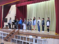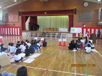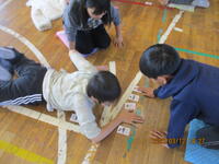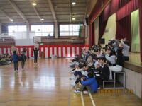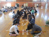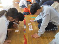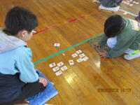 5・6年生が体育館に集まり、歴史上の人物が描かれた「かるた」を使って、一緒に交流しました。社会科で勉強した6年生が有利と思われましたが、5年生も善戦し、白熱した「かるた」交流会になりました。この1年間、高学年として、共にがんばってきた5・6年生。最後には、お互いを称え合い、よい交流会になりました。