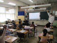 外国語の授業(1・2年)と歴史かるた交流会(5・6年)