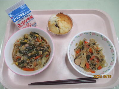 今日は、人気メニューのみそラーメンです。ラーメンは、普段食べるときは、ビタミンが不足しがちですが、給食では栄養満点になるように野菜をたくさん入れています。ビタミンは体の調子を整える大切な栄養素です。おうちやお店でラーメンを食べるときも、ぜひ野菜を追加してみてください。