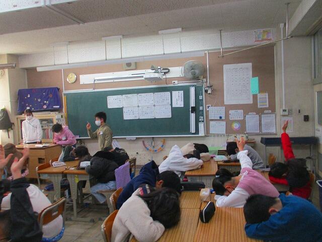 3年生,3・4校時には4年生が体育館で行いました。1年生は1校時,2年生は2校時