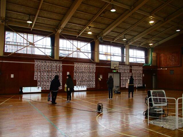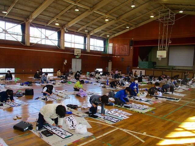 本日,1~2校時は3年生,3~4校時は4年生が体育館で校内書き初め会②が