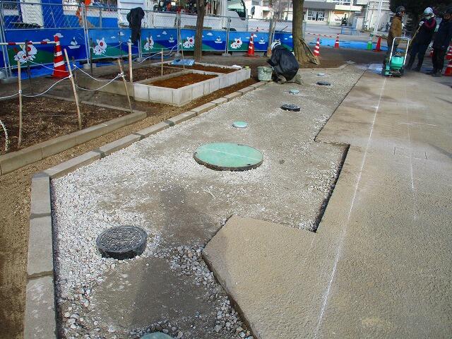 の設置・下水管の拡張工事・花壇の移動・避難時の備品倉庫の設置
