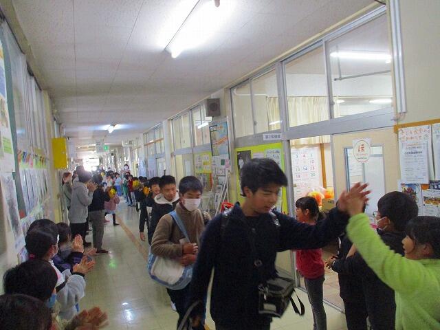 をしました。各教室の前に来ると「今までありがとうございました。」「中学校でも