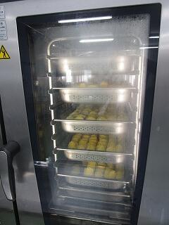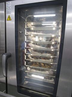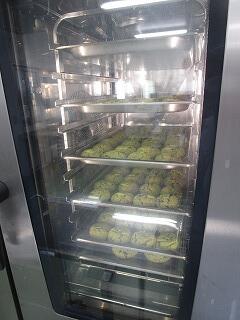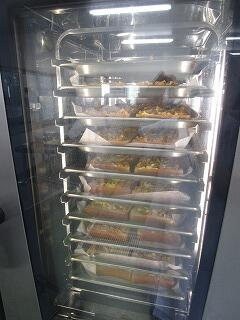 スチームコンベクションオーブンでスチームを出しながら焼いているところです。