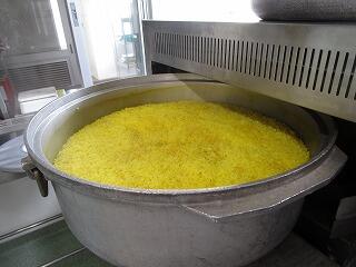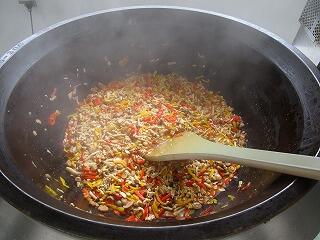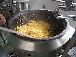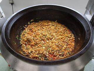 メキシカンライスのご飯と具を大釜で混ぜているところです。