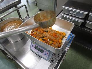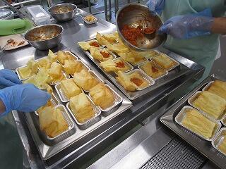 全部入れ終わったら、上から給食室特製ソースをかけて完成です。
