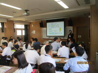 1年生が生活科の学習で、シャボン玉体験をしました。ストローや針金、うちわなど、各自持ってきた道具を使って、楽しく活動することができました。2年生は、体育の学習で、跳び箱運動を頑張っていました。3年生国語の「生き物ブック」の学習で、タブレットを使い、自分で調べたことをまとめ、上手に発表していました。4年生は、国語の「ぞろぞろ」の練習を、5年生は、柏市教育委員会の先生を招いて、夏休みの自由研究について、教えていただきました。6年生は、外国語の学習で、外国の文化について発表していました。夏休みまであと1週間。みんな元気に頑張っています。