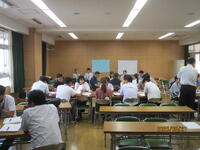 午後からは、柏中学校区3校(柏中・柏一小・旭東小)の教職員が柏中学校に集まり、研修を行いました。第1部は、「不祥事根絶研修」です。グループごとに事例に基づいて、話し合いながら研修を深めました。